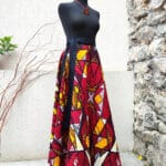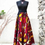 Dlouhá, zavinovací sukně kolového střihu, ušitá z kvalitní bavlny dovezené z Tanzánie.