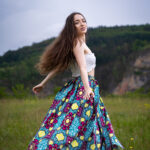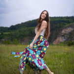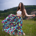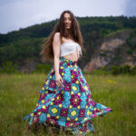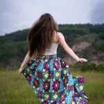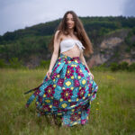 Dlouhá, zavinovací sukénka ušitá z jemné africké látky pestrých barev.