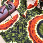 Hand made taška ušitá z pestré, originální látky a k ní jako doplněk šátek na hlavu.