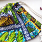Batoh ušitý z africké látky, barevný, veselý.