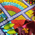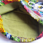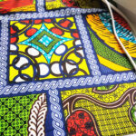 Batoh ušitý z africké látky, barevný, veselý.