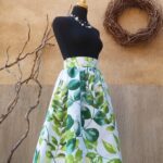 Originální sukně ušitá ze 100% bavlny, krásný akvarelový potisk listů.