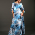 Výstřih u šatů můžete nosit dvěma způsoby – hlubší vzadu pro odhalený a smyslný detail, nebo vpředu výše u krku pro éterický a klidný výraz. Rukávy jsou široké, prostřižené a na zavázání – nechávají prostor pro vaši individualitu i náladu. Díky splývavému střihu lichotí všem typům postav, krásně vlají kolem boků a pohybují se s vámi – jako byste kráčela po hladině. Tento model není jen oblečením – je to stav mysli. Podpoří vaši ženskost, jemnost i sílu. Ať už se rozhodnete pro bouři, vlnu nebo šepot – stanete se nezapomenutelnou součástí přírody, kterou nosíte na sobě.