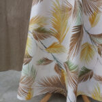 Bavlna s potiskem palmových listů na světlém podkladu.