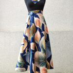 Elegantní, zavinovací sukni půlkolového střihu.
