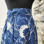 Dámská, elegantní, zavinovací sukně půlkolového střihu.