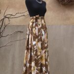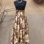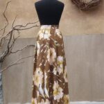 Elegantní, zavinovací sukně, splývavá viskoza, hnědý podklad s tiskem krásných květů.