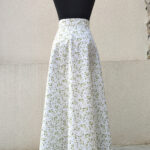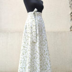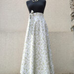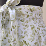 Zavinovací sukně půlkolového střihu, 100% bavlna s jemným, vzorkem zelených lístků.