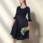 Elegantní midi šaty v černé barvě – ztělesnění jednoduchosti, krásy a ženské elegance.