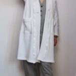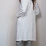 Bílý kardigan jednoduchého, rovného střihu.