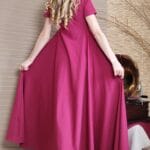 Jasně růžová, velikost S, míry přes prsa 76cm, délka 130cm, viskoza