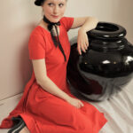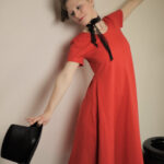 Červená barva, bohatý dolní lem, 98% bavlna, 2% elastan.