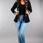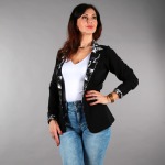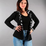 Fraktálové sako je velký černý elegán v kombinaci krásného černobílého fraktálu. Sáčko můžete převázat saténovou stuhou a nebo zapnout pomocí skrytého háčku. Dlouhý rukáv elegantně ohrňte na 3/4.