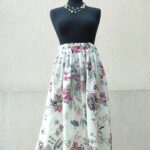 Pohodlná sukně ušitá z heboučké bavlny, bílý podklad s květy.