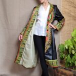 Kabátek ušitý z pevné, černé makenzi, vypodšívkovaný. V pase mírně projmutý, na bocích kapsy ve švech.