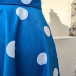 100% bavlna, světle modrý podklad s tiskem bílých puntíků.