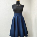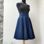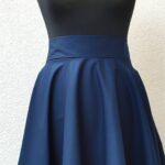 Kolová sukně ušitá z velmi kvalitní bavlny, s malým podílem elastanu v odstínu navy.