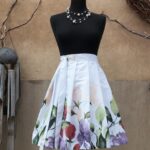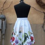 Zavinovací sukně ušitá ze 100% bavlny, bílý podklad s potiskem krásných, akvarelových květů.