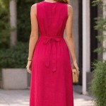 Letní elegantní šaty z přírodních materiálů.60%bavlna 40%len.červené šaty jsou unikátní model určený na letní dny k běžnému nošení a také u příležitosti letních slavností. Mají rozparek ke kolenu jsou dlouhé a rovné, možno také použít pásek ze stejného materiálu. Jejich živůtek je s vodou-název pro ležerně položenou látku okolo výstřihu.Velikost 38-40. Jeden jedinný model. Na přání ušijeme tento model podle vašeho přání,z jiné látky,jinou velikost.Vaše míry uvedte v objednávce. Délka šatů od ramene122cm.
