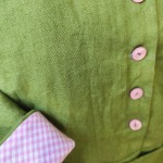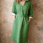 šaty z přírodního lnu s 3/4 rukávem, délka pod kolena, sulně do A, kapsy, barevné detaily v podložení.