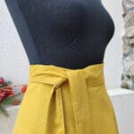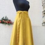 Tato zavinovací manšestrová midi sukně v barvě curry představuje spojení ženskosti, elegance a přírodního komfortu.