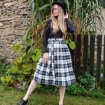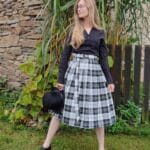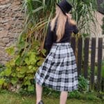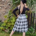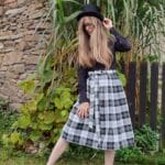 Zavinovací sukně ušitá ze středně silné tkaniny, směs umělého vlákna a bavlny.