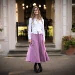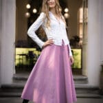 Půlkolový střih lichotí všem typům postav – krásně sedí v pase a volně se rozvíjí přes boky.