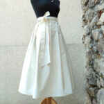Dámská zavinovací sukně ušitá z krásné látky bílé barvy. Kvalitní bavlna střední gramáže, dobře drží tvar.