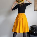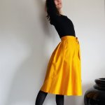 Midi bavlněná hořčicová sukně v zavinovacím střihu, která spojuje pohodlí, styl a poctivé řemeslo. Tato sukně je ušitá z kvalitní prodyšné bavlny, díky čemuž je ideální pro každodenní nošení i speciální příležitosti. Zavinovací provedení umožňuje snadné přizpůsobení postavě a vytváří lichotivou siluetu.