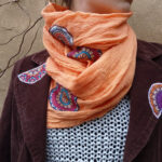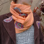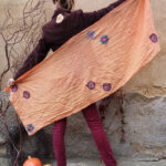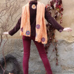 Ručně šitý a barvený organtínový šál v jasné, lososové barvě.
