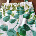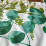 Plátěná taška ušitá ze 100% bavlny, bílý podklad s tiskem akvarelových listů.