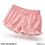 Pohodlné kraťasy z bavlněného plátna, kde jsou na růžovém podkladu drobné bílé hvězdičky. Klasický zlatoručičkový bokový střih.