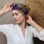 Africký šátek ušitý ze 100% bavlny, fialová barva.