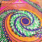 Šátek ušitý ze 100% bavlny, krásné syté barvy, zajímavý design s neonovým potiskem.