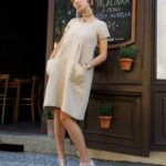 Pohodlné krátké šaty ušité ze směsové látky s podílem vlny.