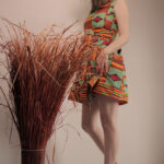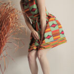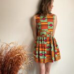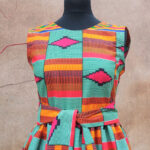 Elegantní šaty ušité z africké látky, směsový materiál s větším podílem bavlny, jemný na omak.