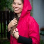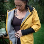 Charakteristický kimono střih nabízí volnost pohybu, praktické kapsy ve švu a rukávy zakončené širokým 15cm nápletem, který zabraňuje profouknutí.