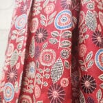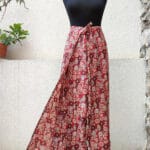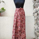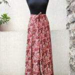 Zavinovací kalhoty ušité z jemné bavlny, bordó podklad s kvítky.