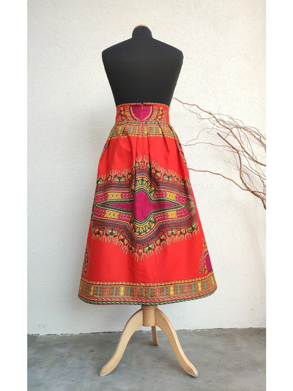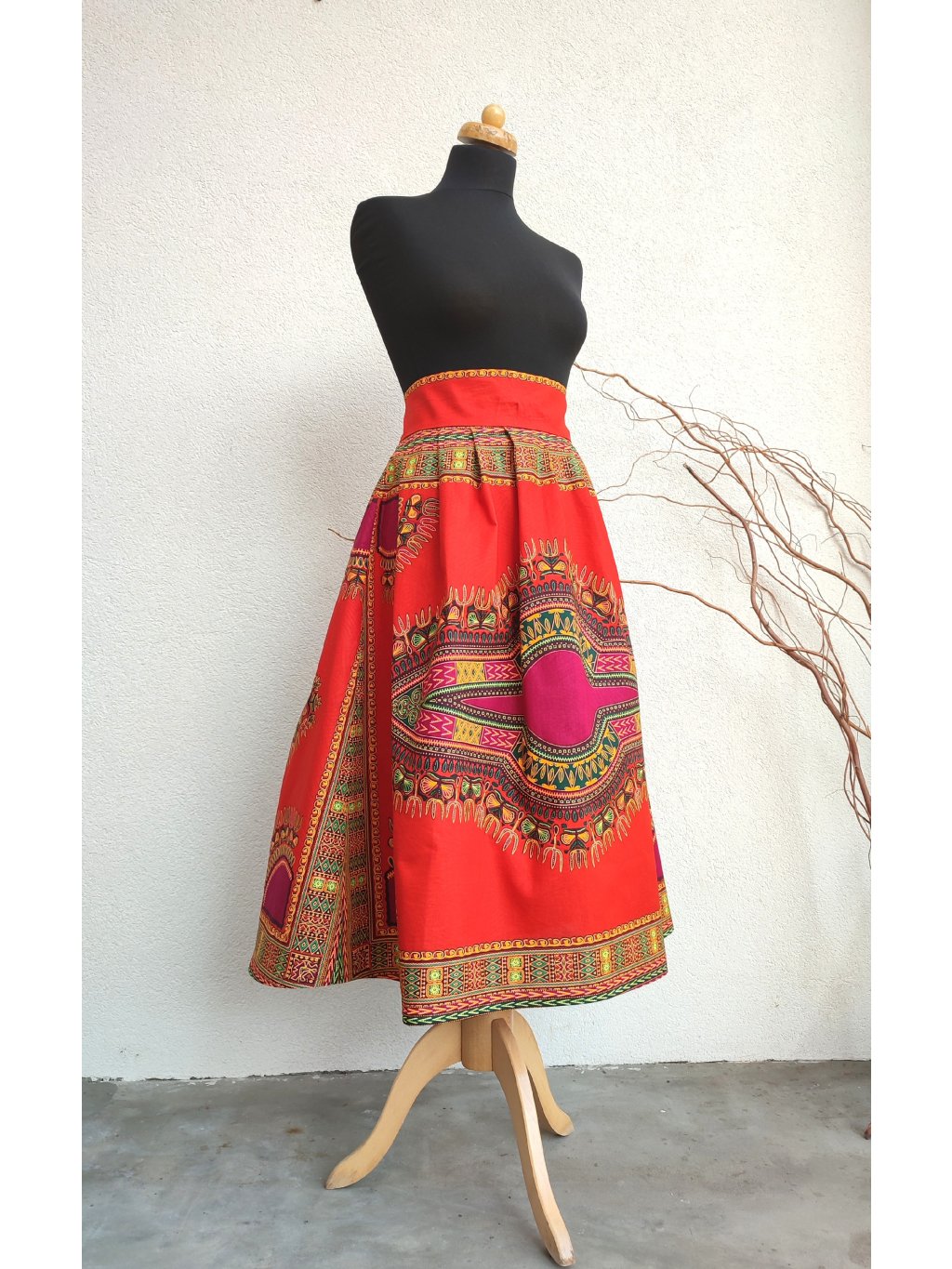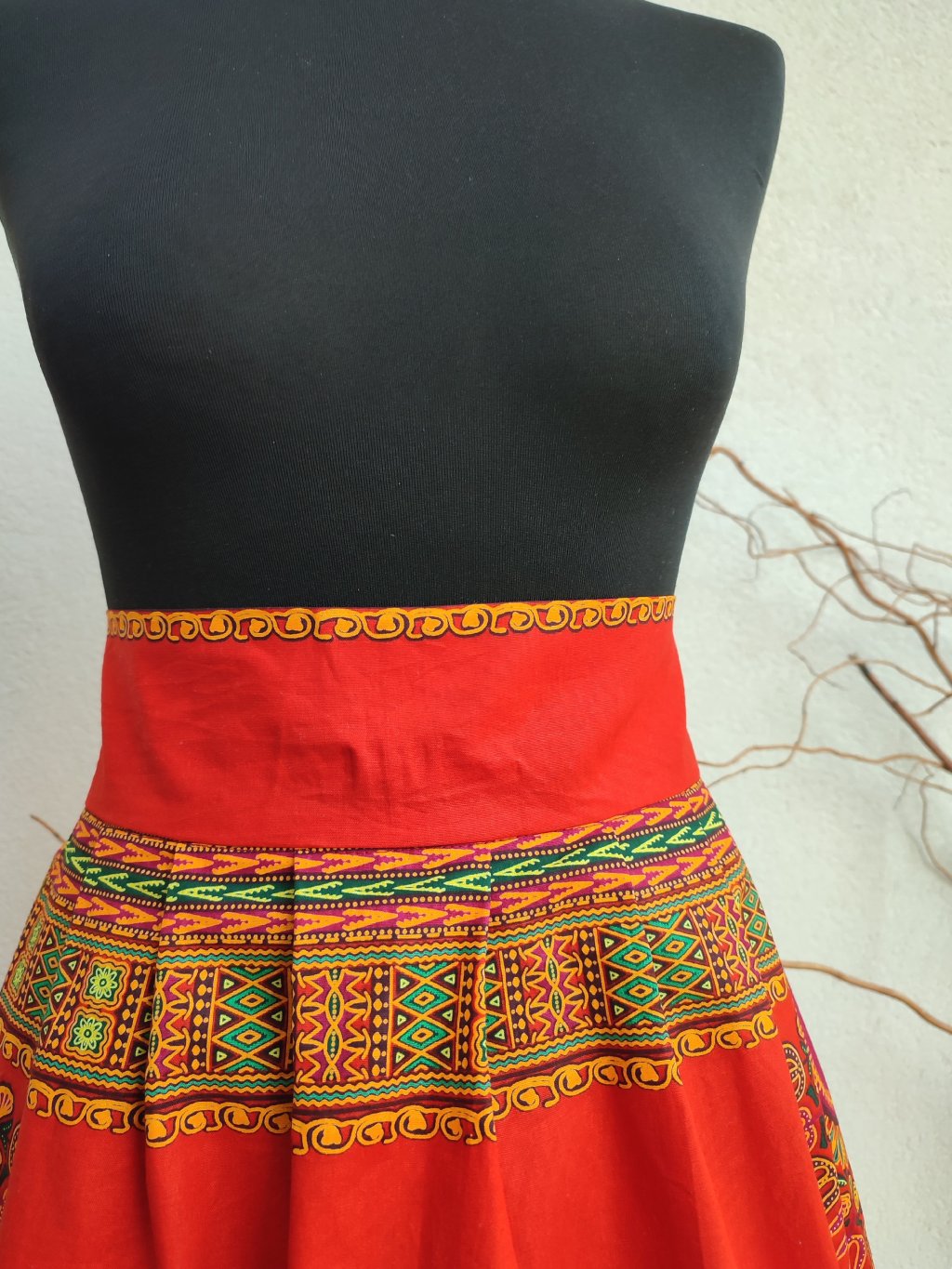 Originální sukénka ušitá z kvalitní africké bavlny, dovezené z Tanzánie. Kvalitní oboustranný tisk, pestré barvy.