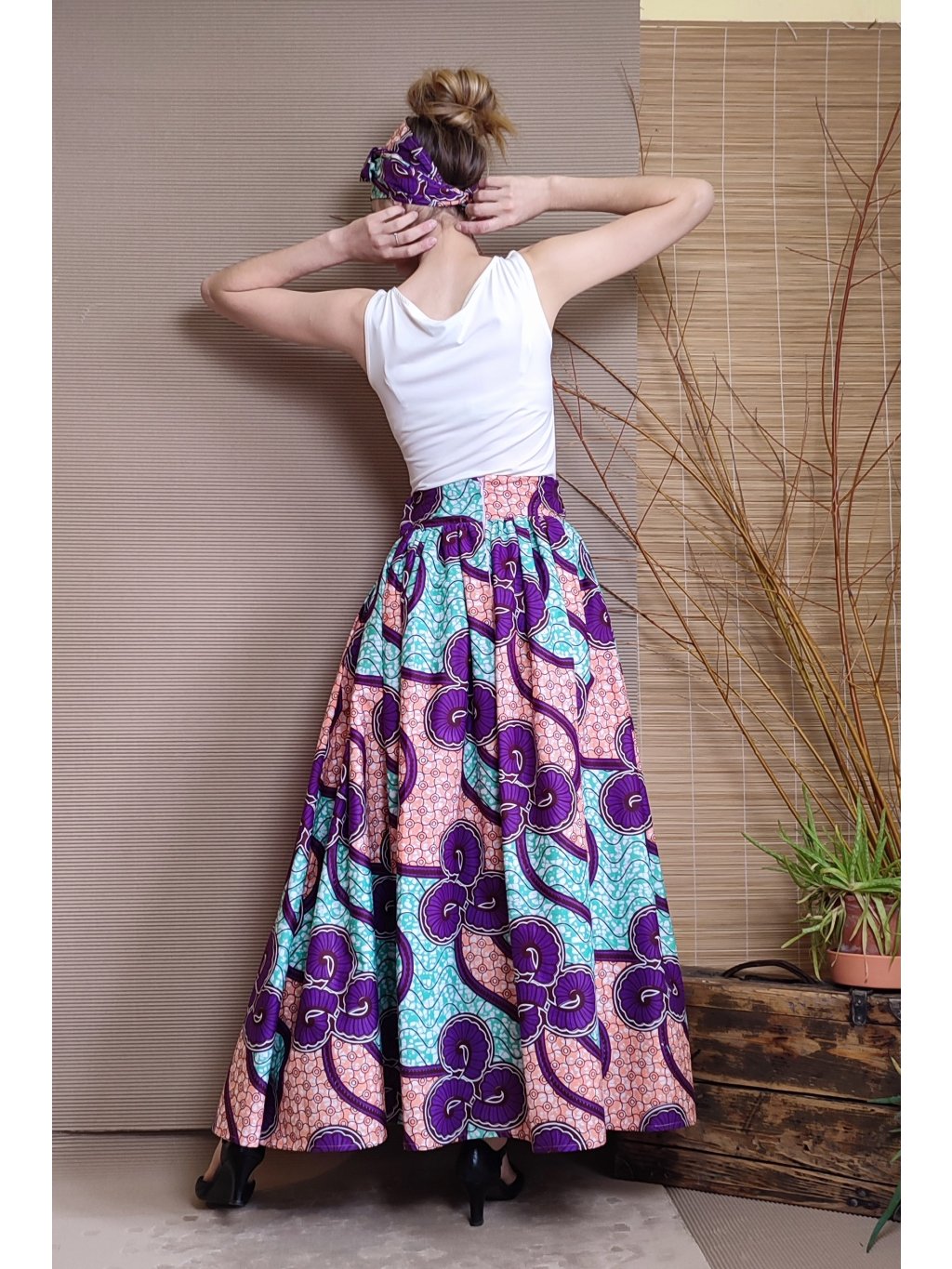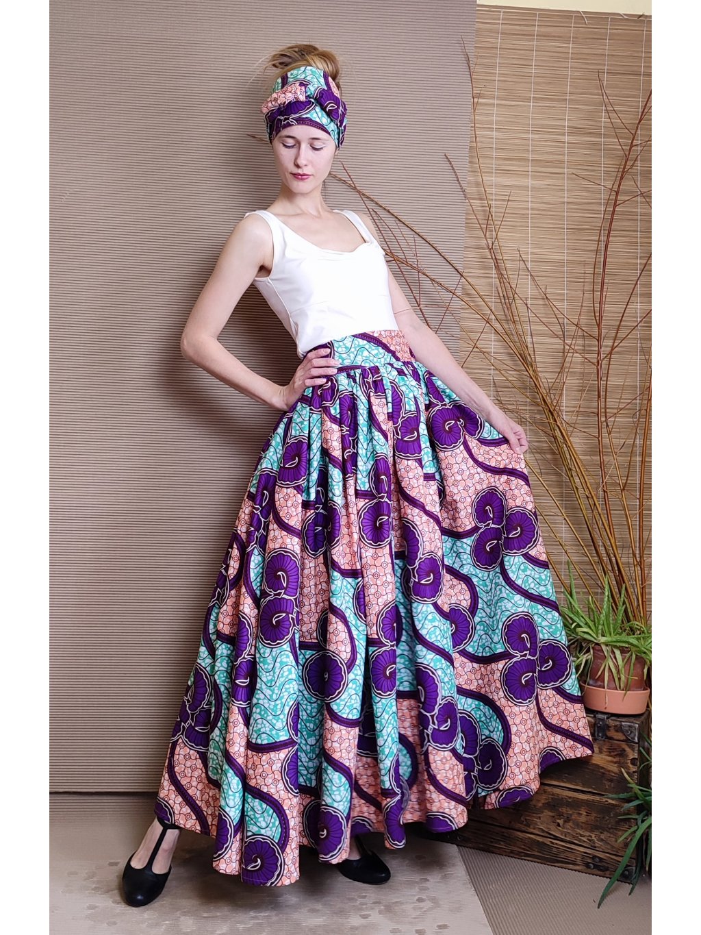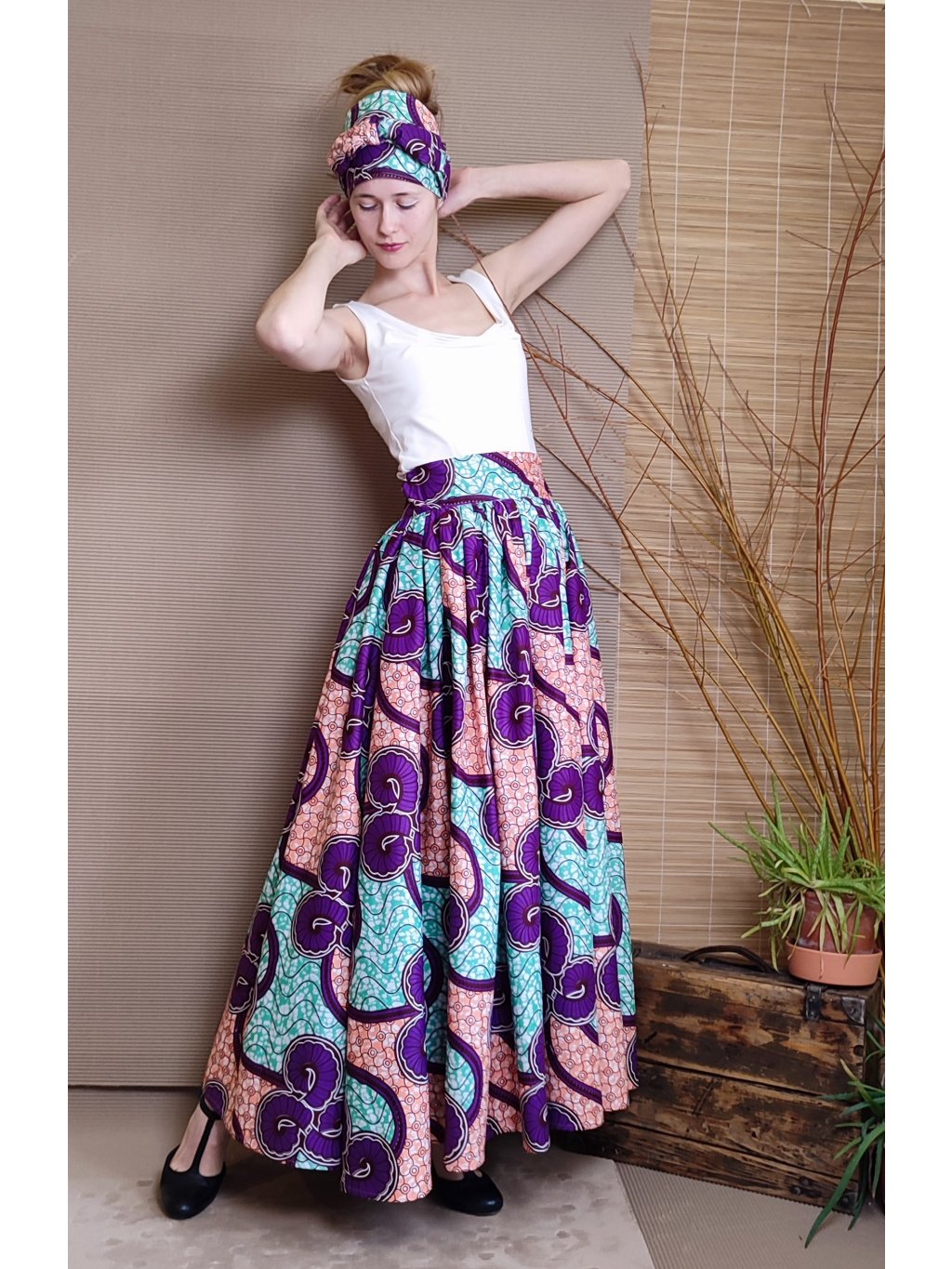 Se sukní se nabízí i šátek na uvázání kolem hlavy.