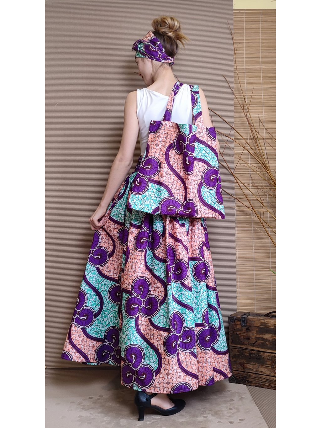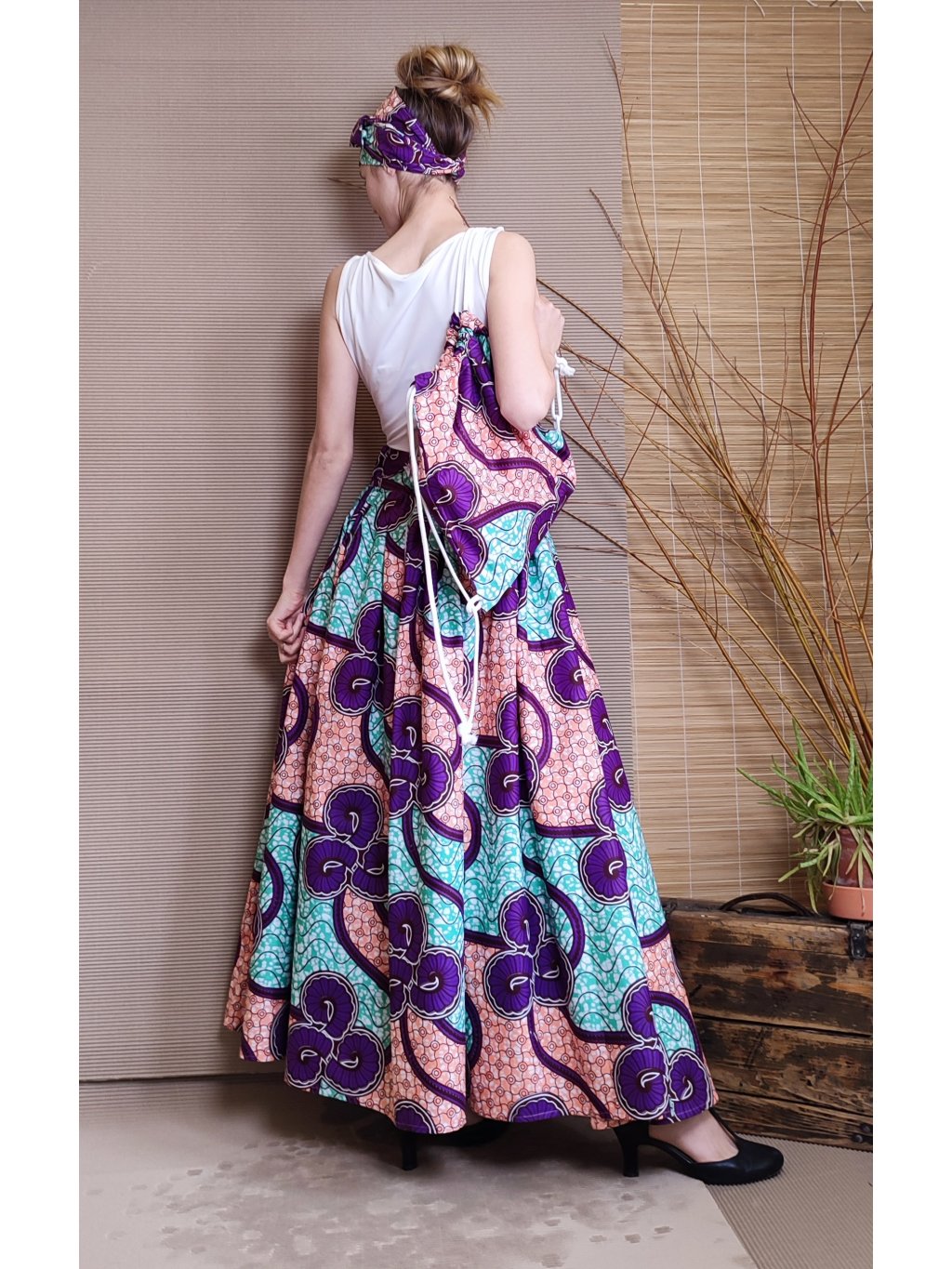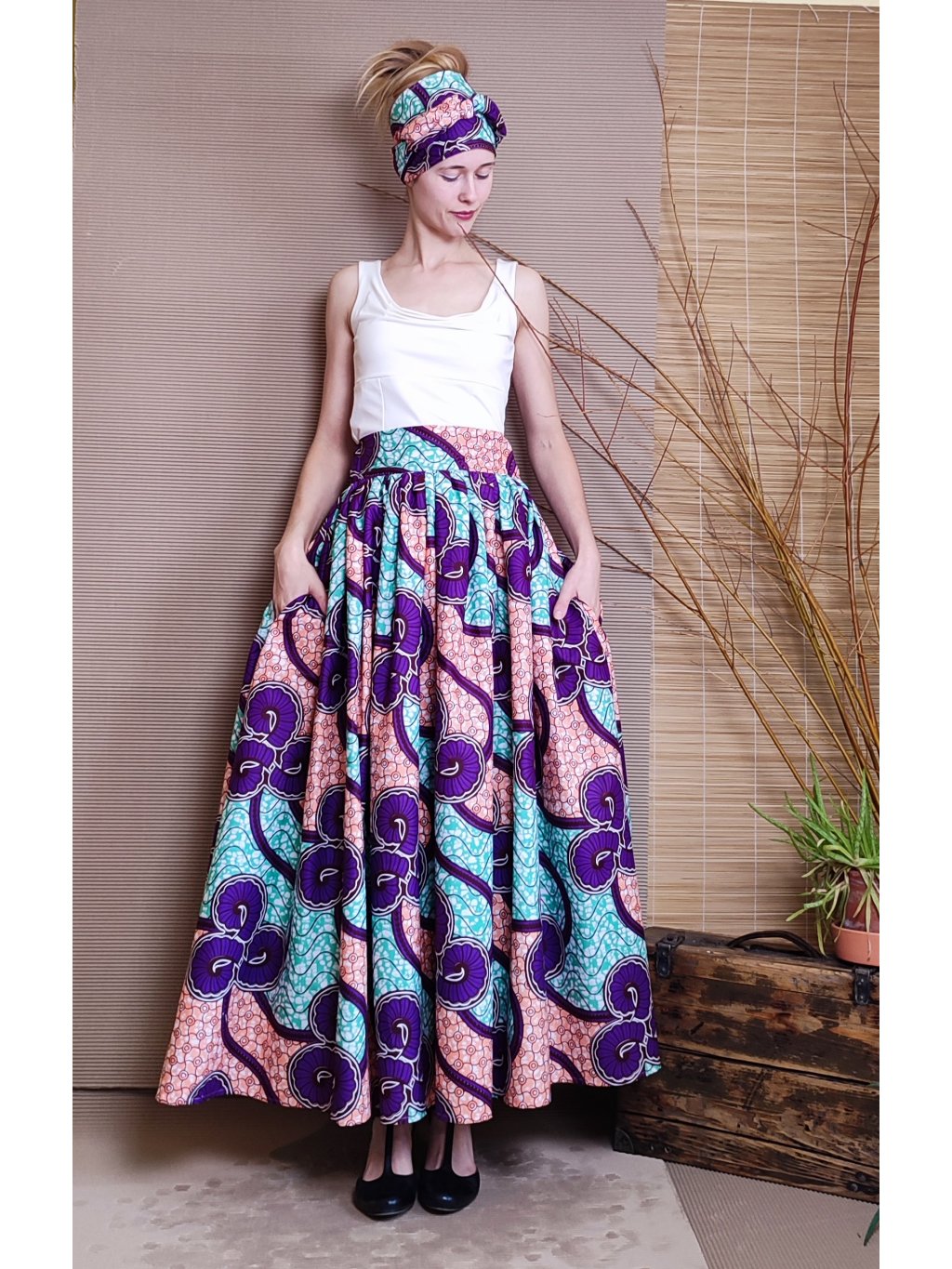 Se sukní se nabízí i šátek na uvázání kolem hlavy.