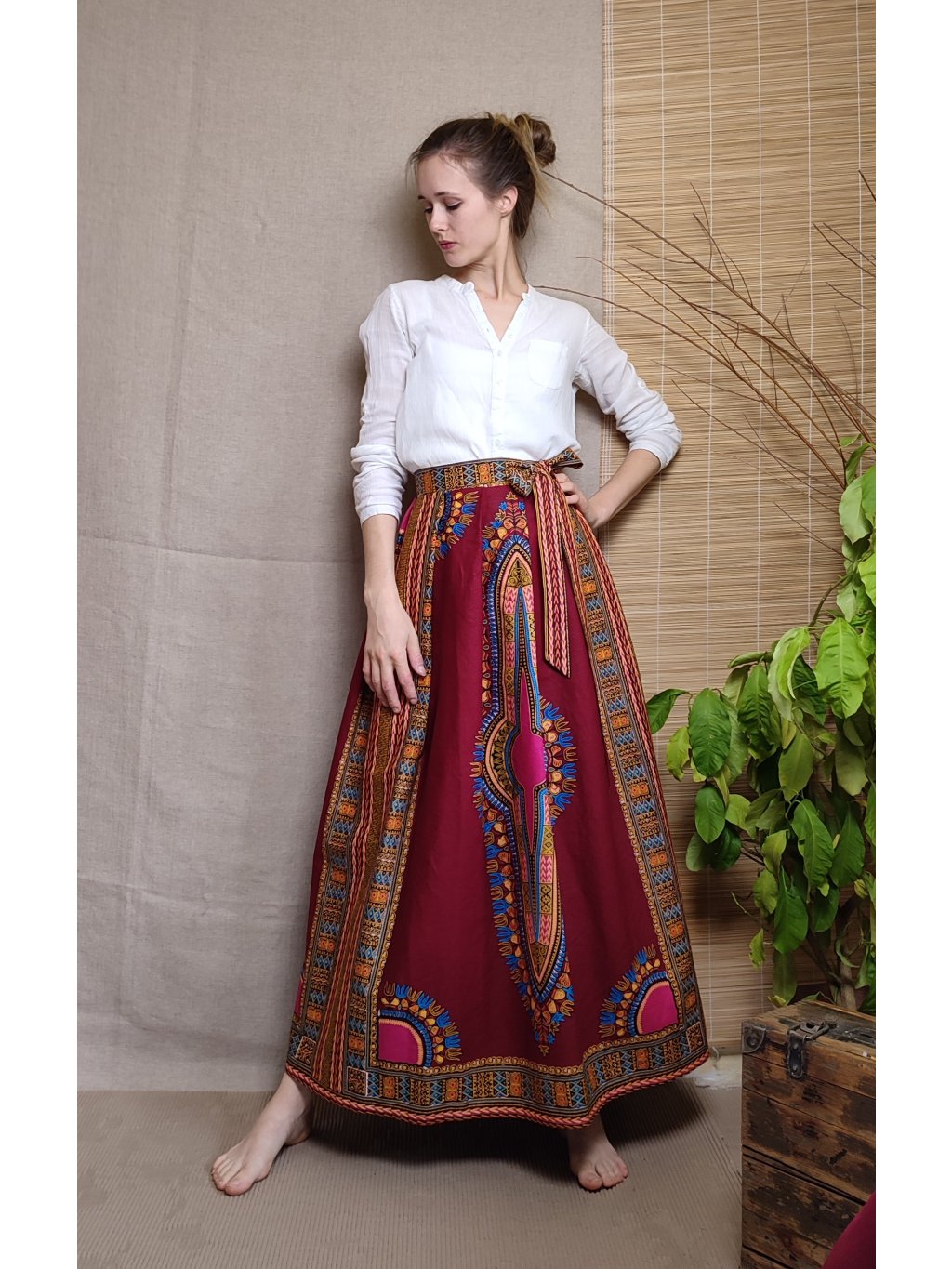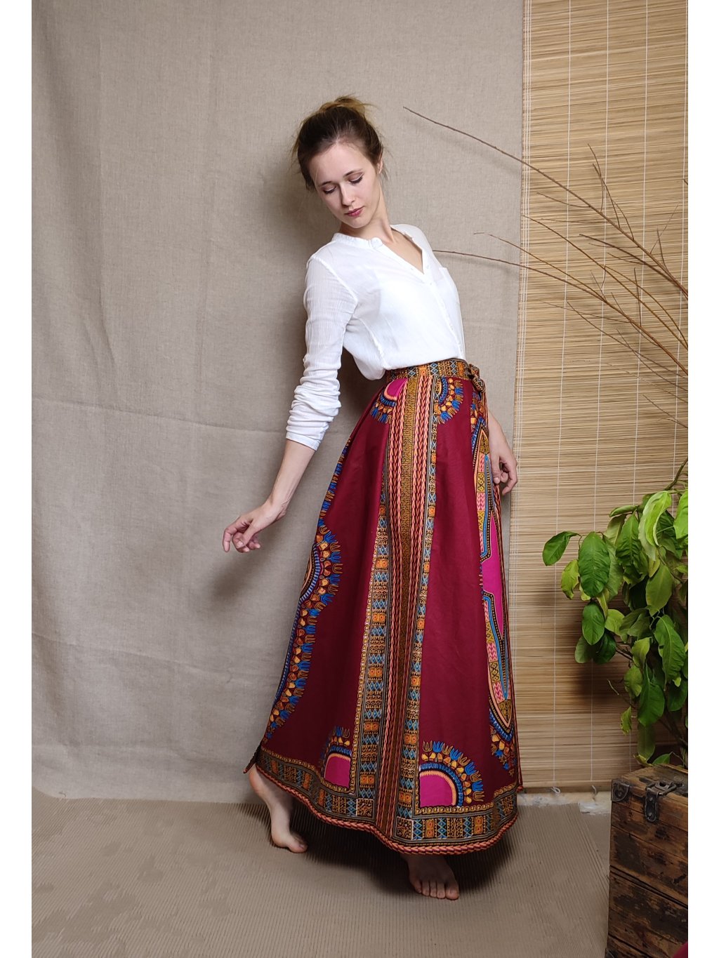 Originální, zavinovací sukně z úchvatné látky, dovezené z Afriky.