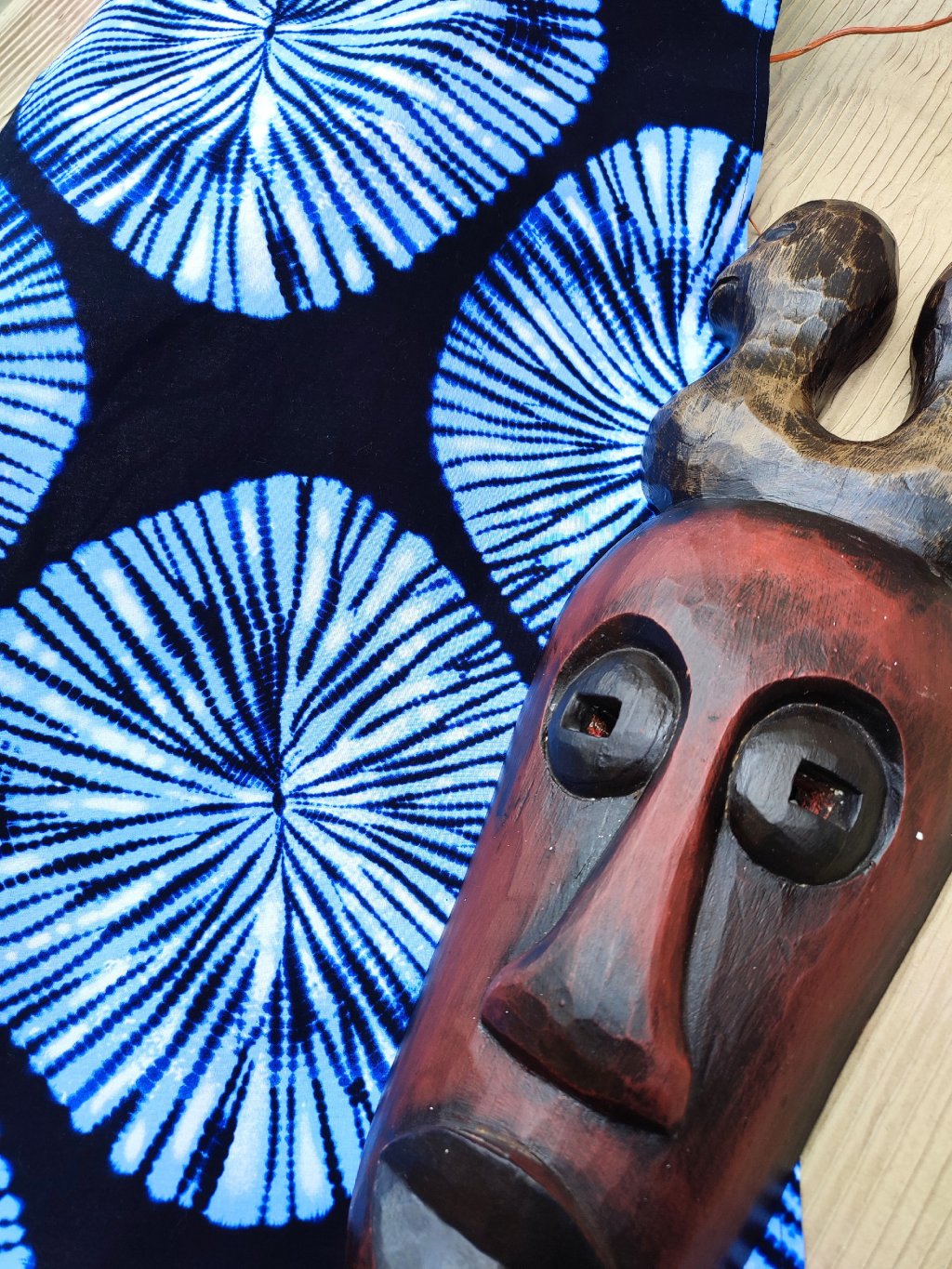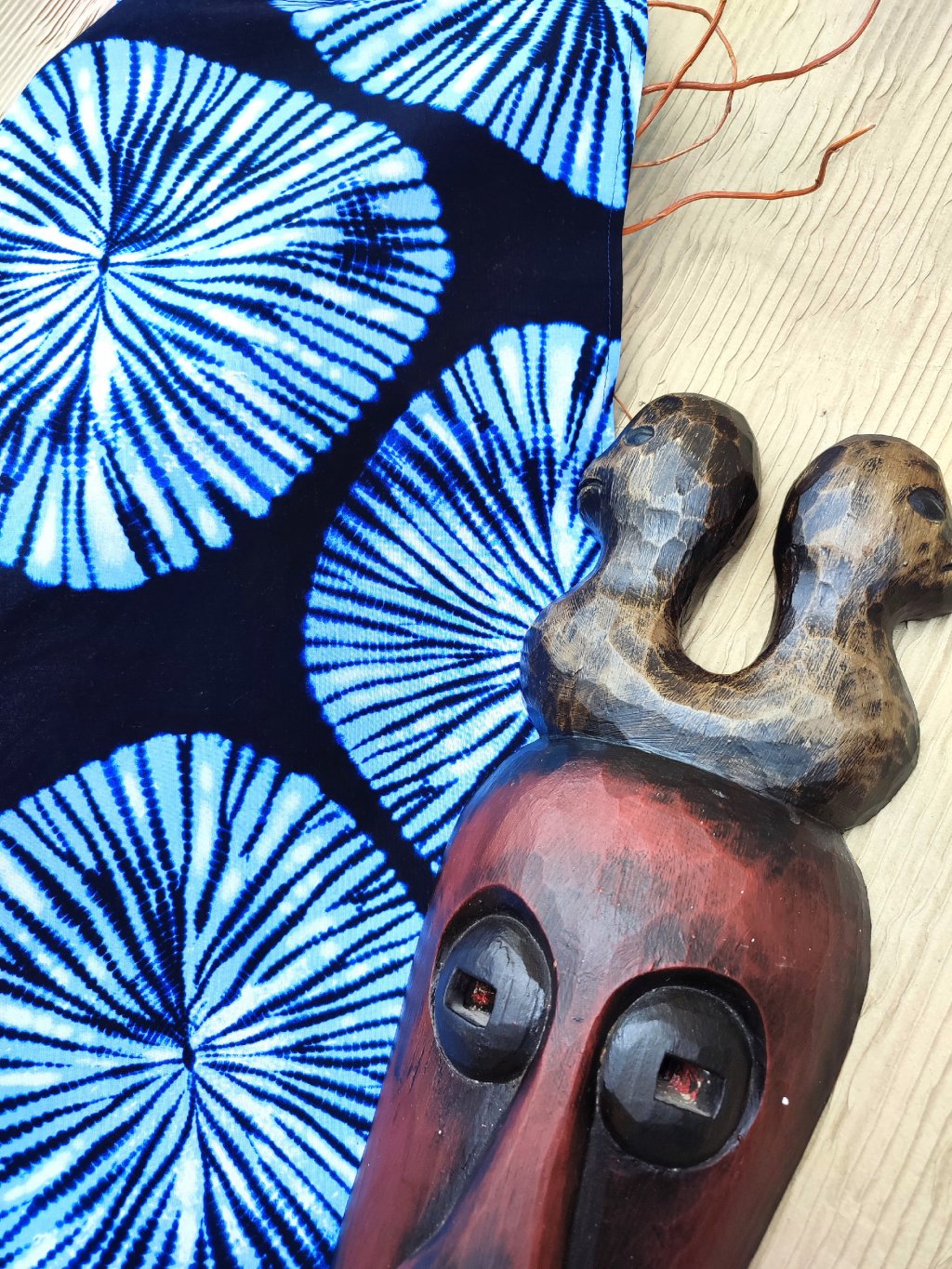 Africký šátek ušitý ze 100% bavlny, temně modrý.