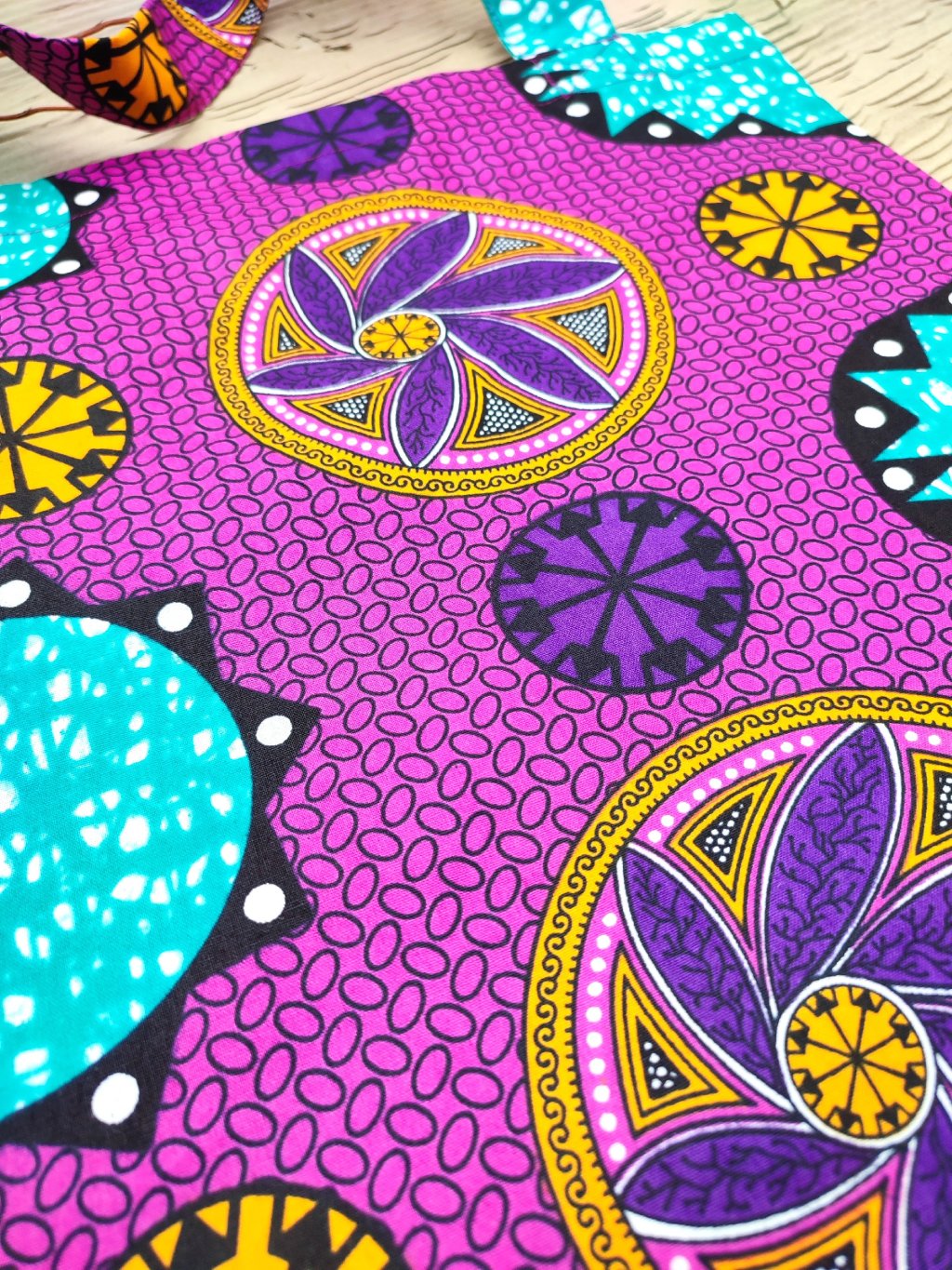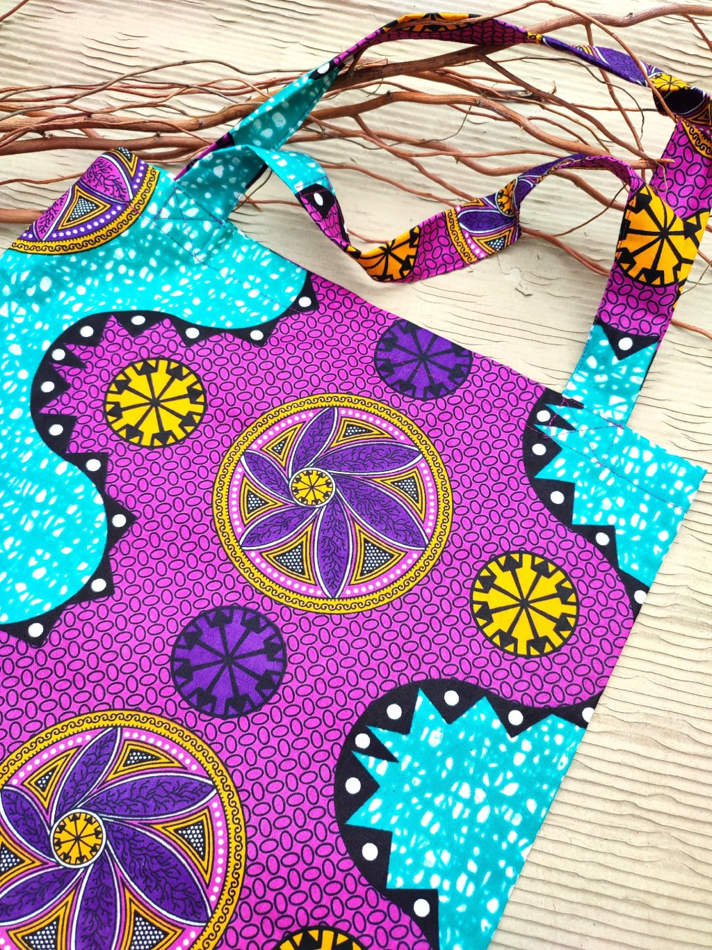 Hand made taška ušitá z pestré, originální látky se vzory.