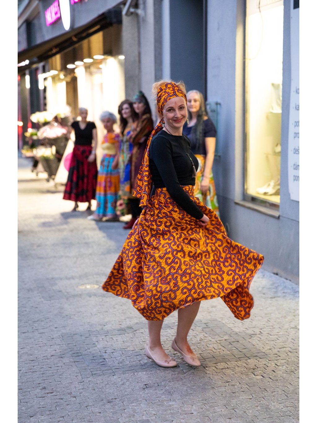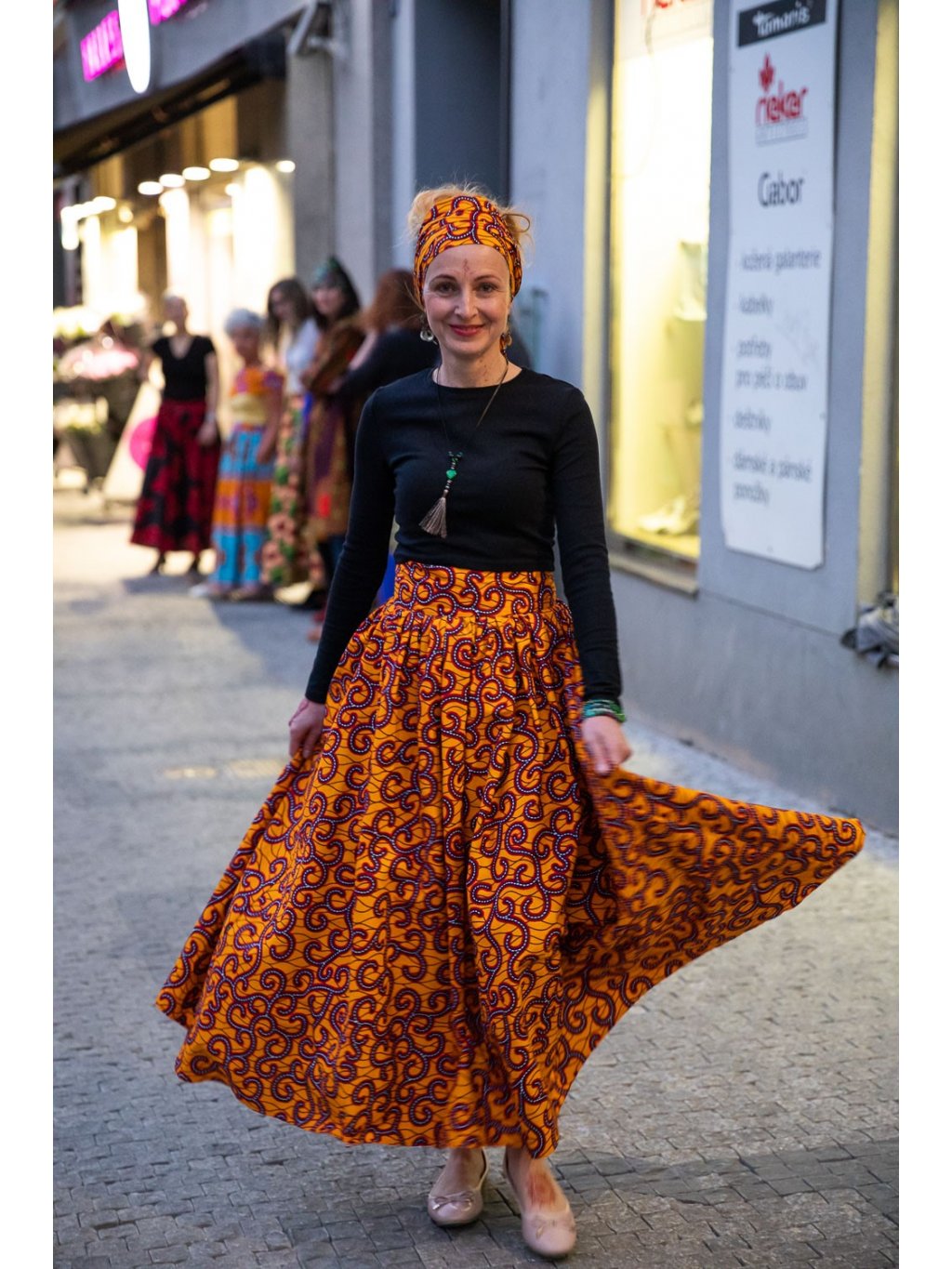 Se sukní se nabízí i šátek, který můžete nosit jako šálku, uvázat ho kolem pasu, nebo hlavy.