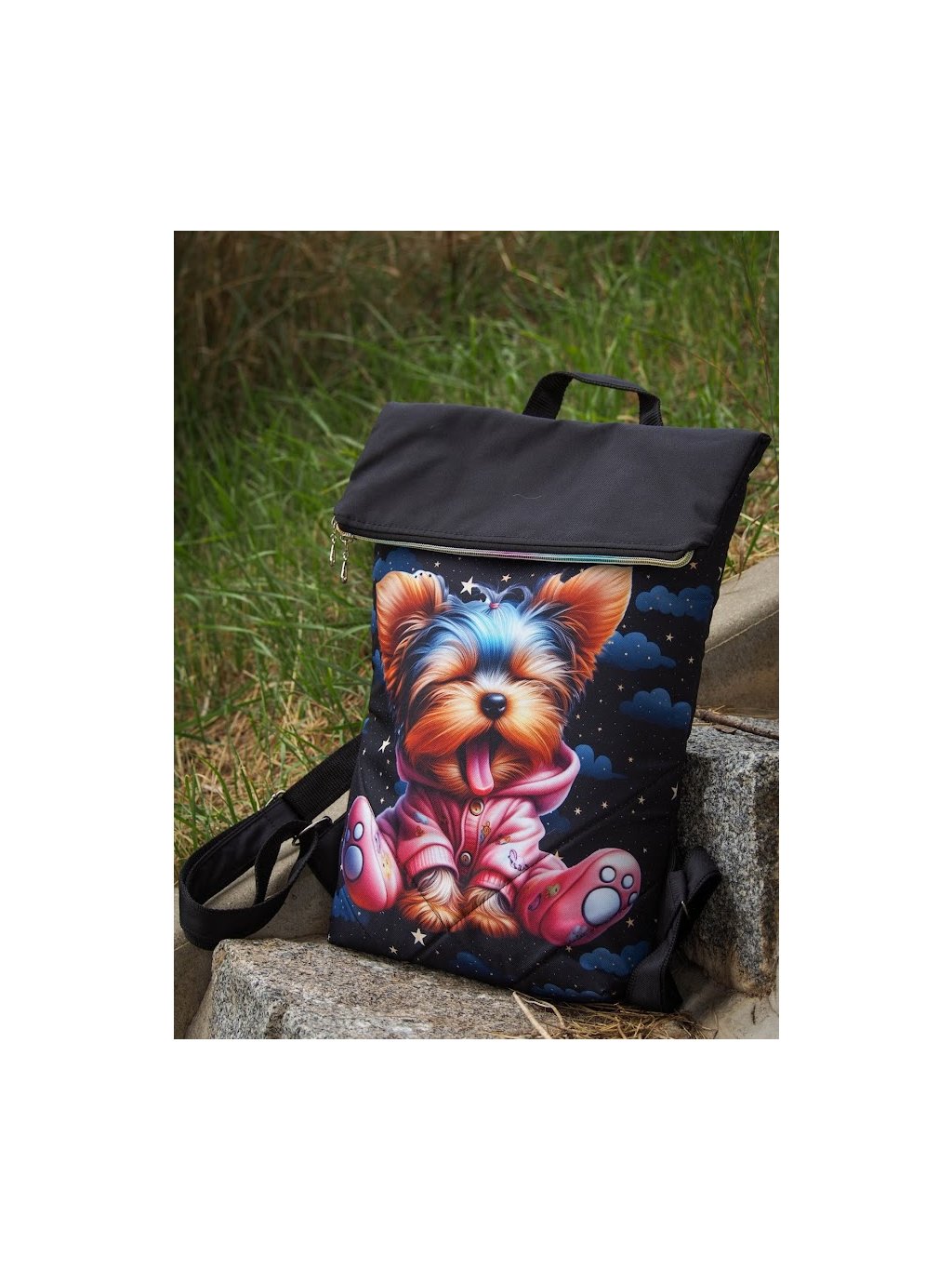 Díky obdélníkovému dnu batoh dobře drží tvar, má nastavitelné popruhy a pevné ucho pro snadné přenášení. Do batohu se pohodlně vejde sešit formátu A4.