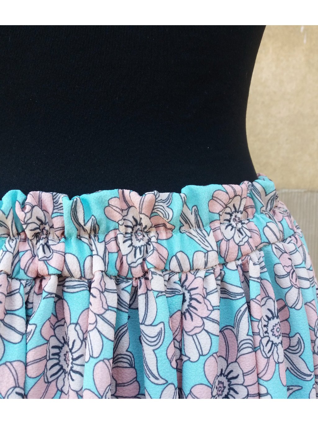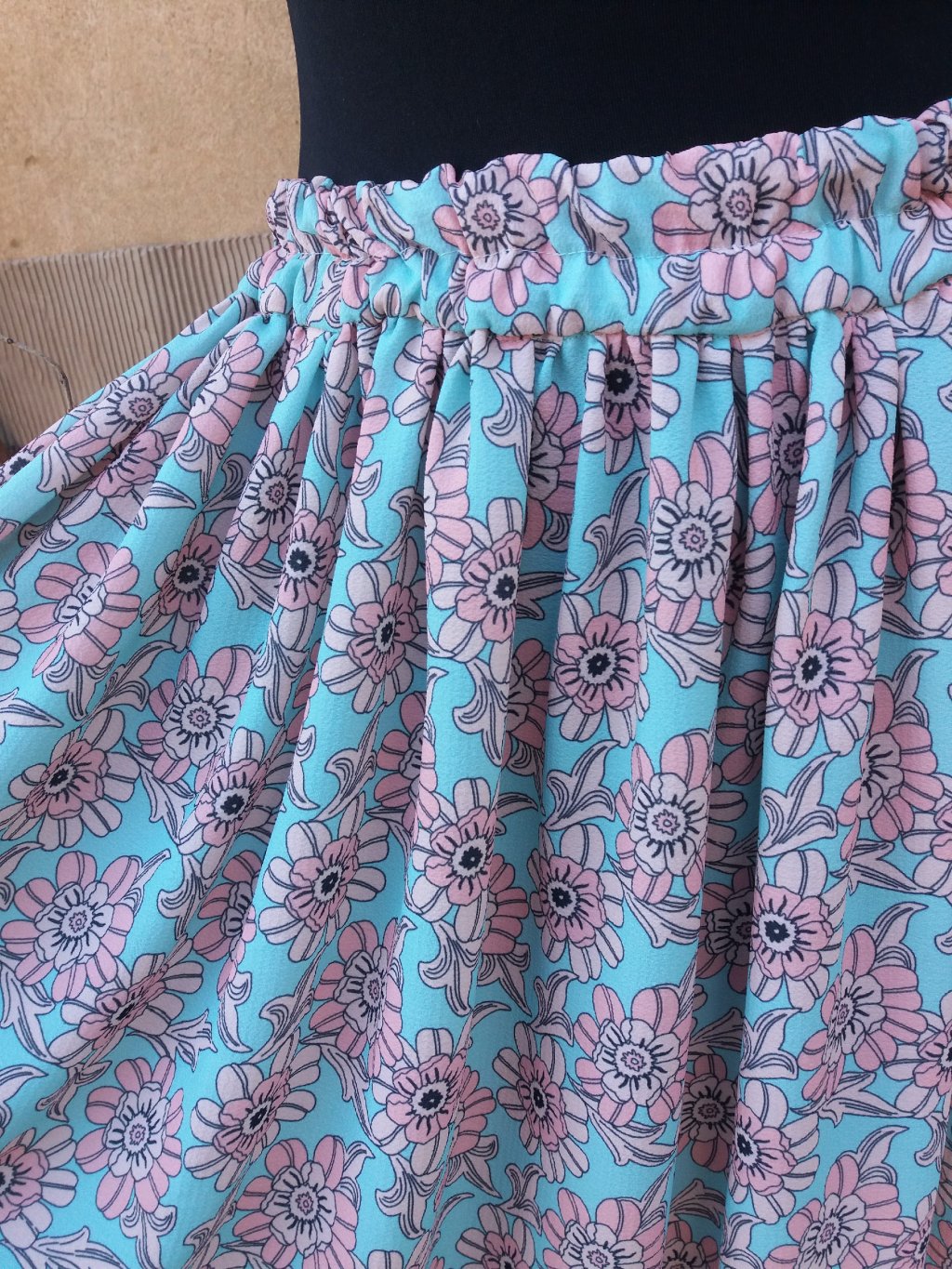 Pohodlná sukénka ušitá z něžné látky, hebký materiál, umělé vlákno.