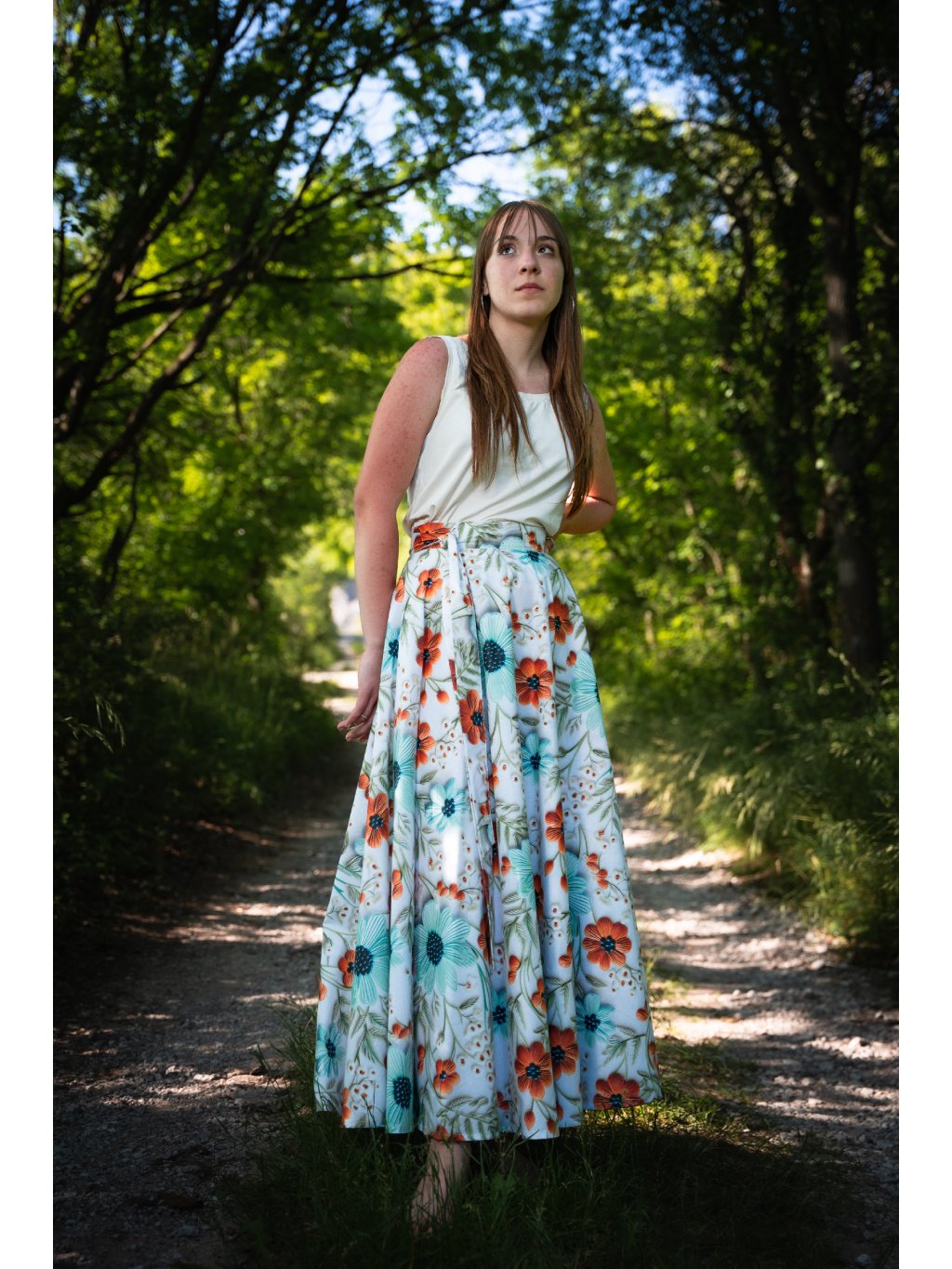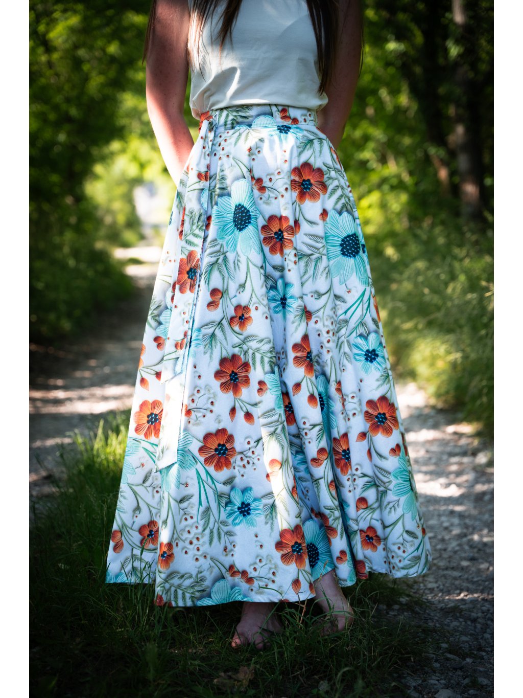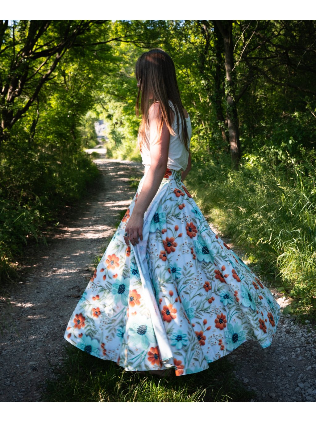 Dlouhá kolová sukně - 5D květy