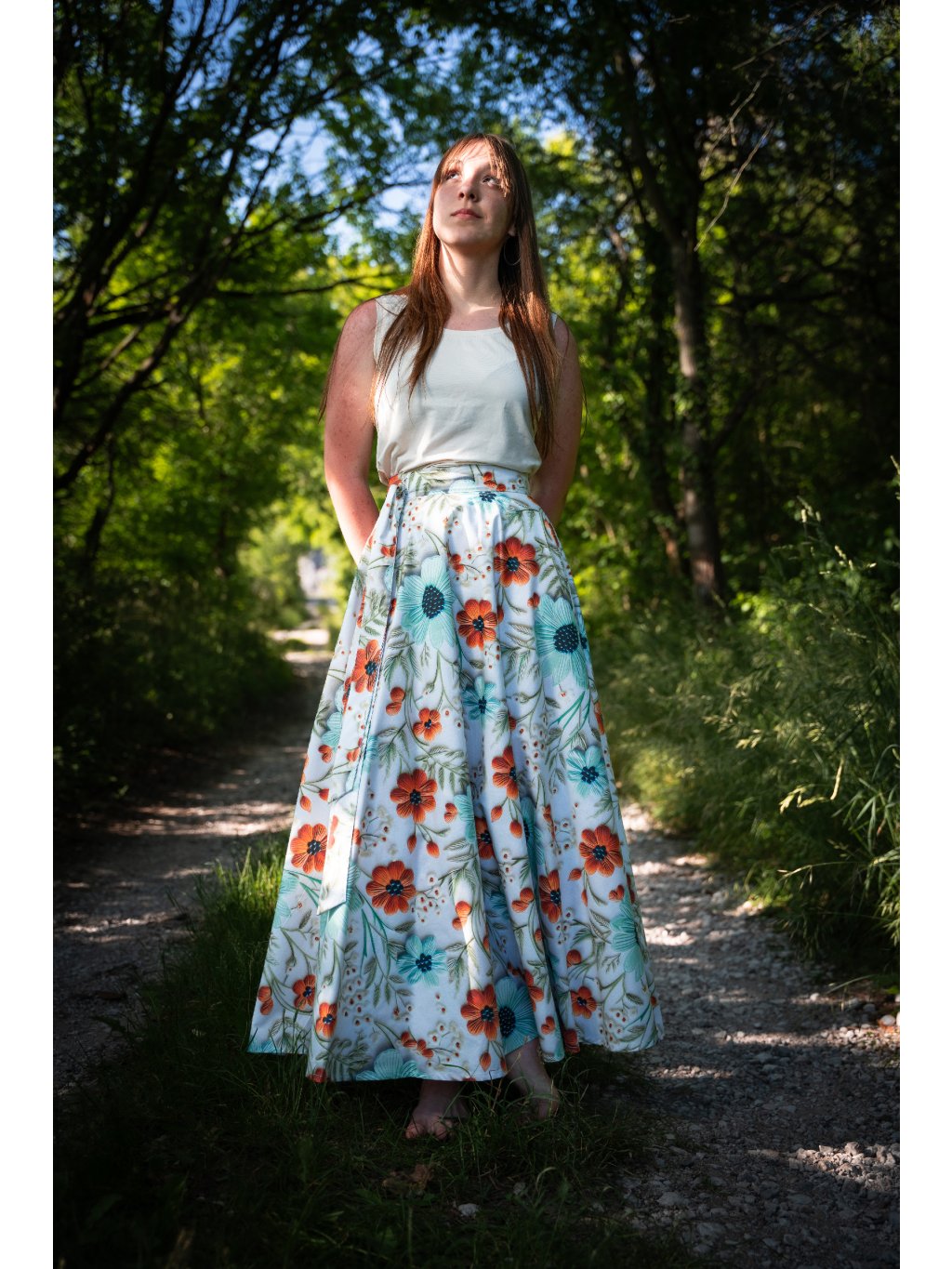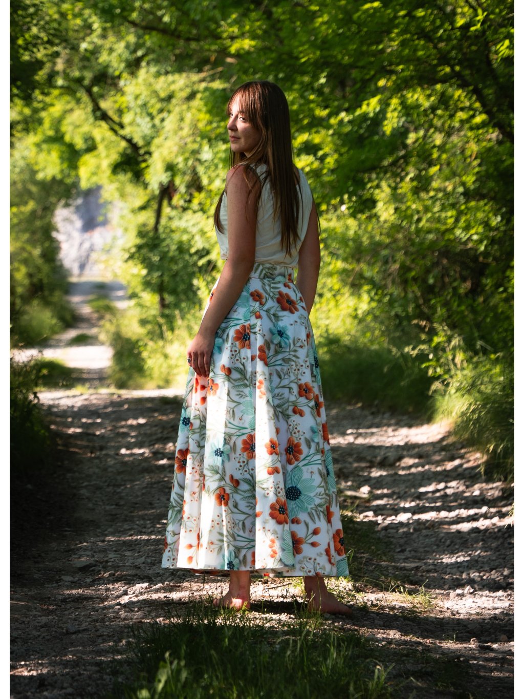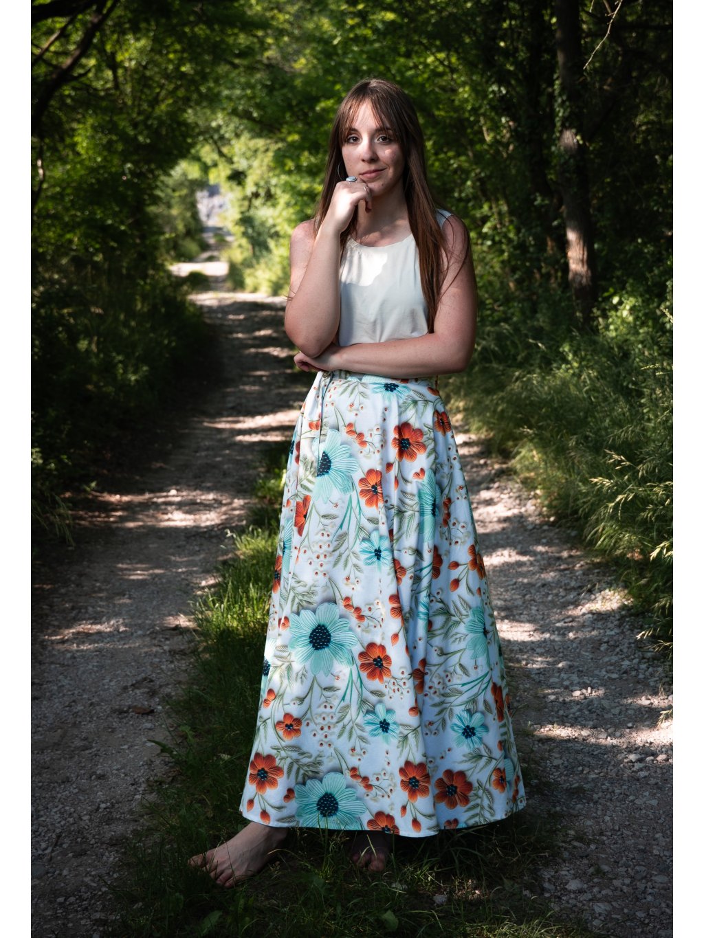 Dlouhá kolová sukně - 5D květy
