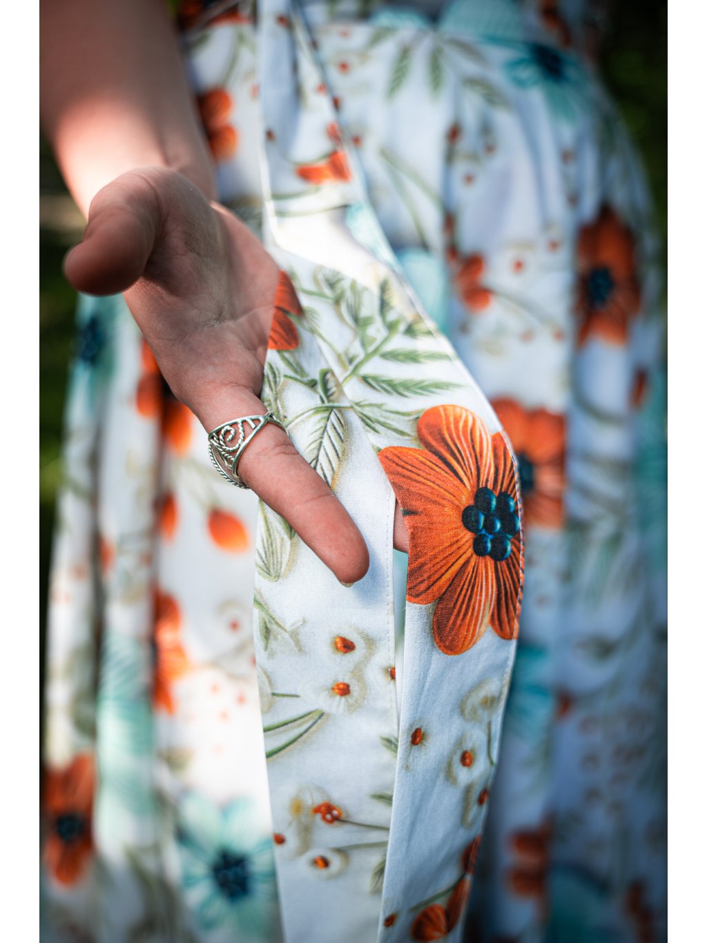 Zavinovací sukně kolového střihu ušitá z kvalitní bavlny. Barevné květy 5D tisk.